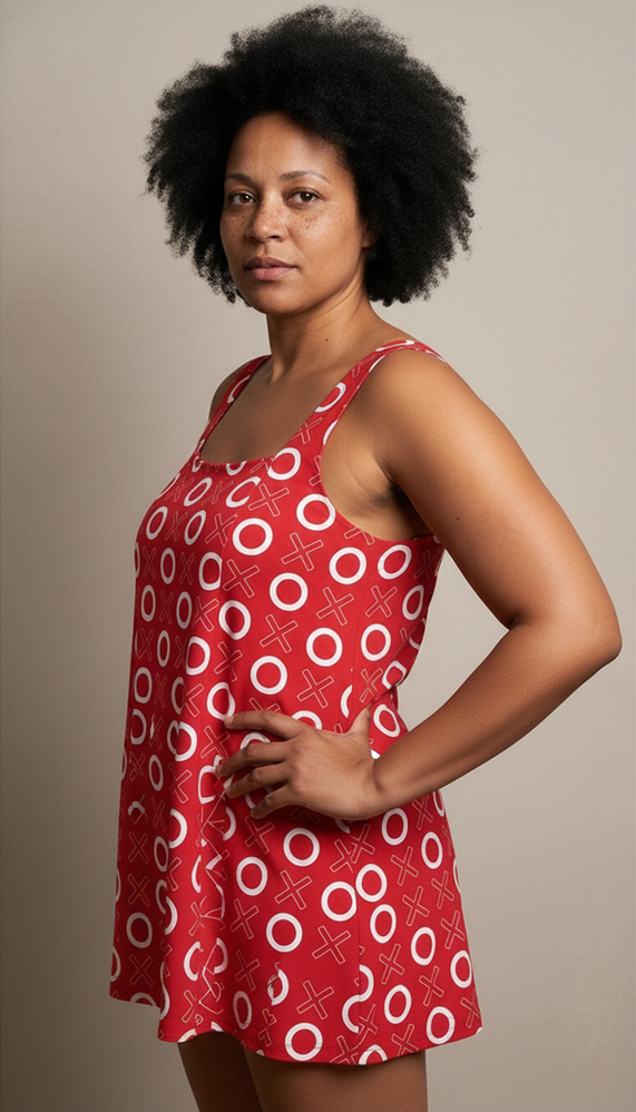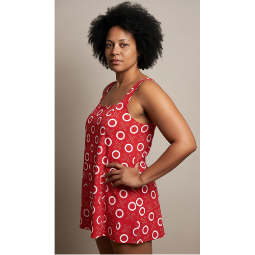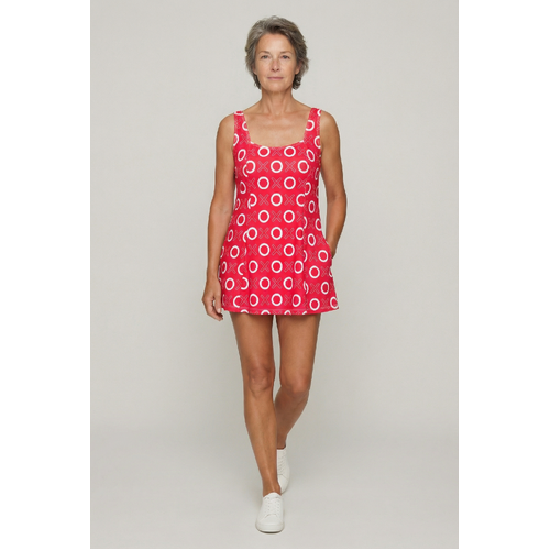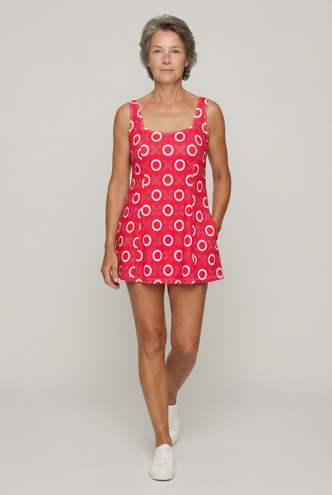 The retro square neckline of our BRIGITTE swim dress is great for widening the appearance of the décolletage without over-emphasising the bust. The overdress drapes elegantly from the neckline to provide a flattering and slimming silhouette.